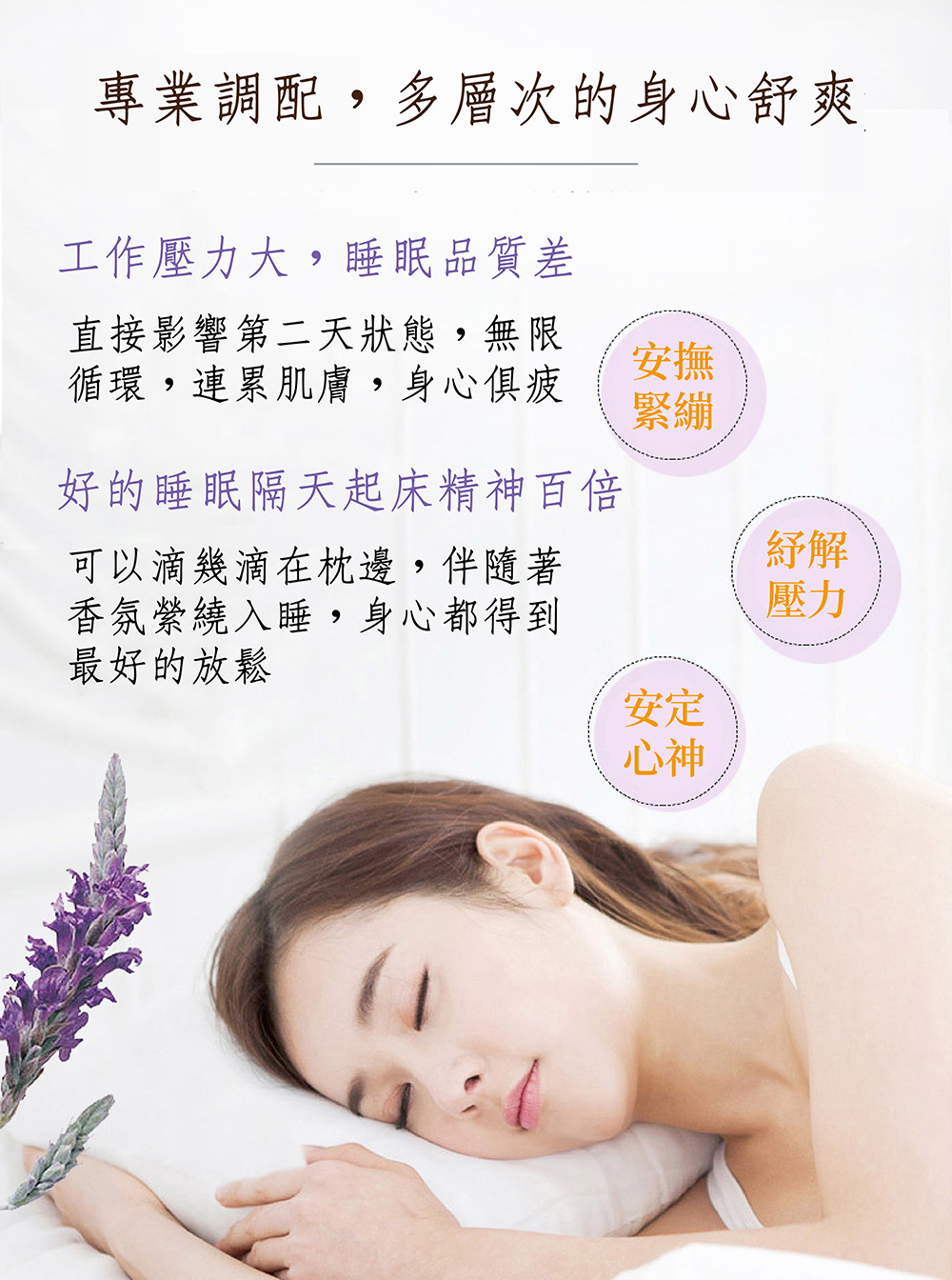 用途:蘊含薰衣草精油,可安撫緊繃疲憊的精神,安定心神